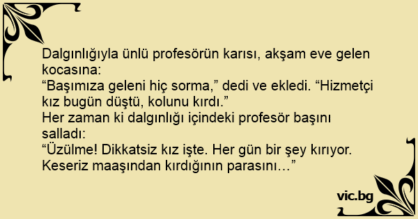 Dalgınlığıyla ünlü profesörün karısı, akşam eve gelen kocasına: