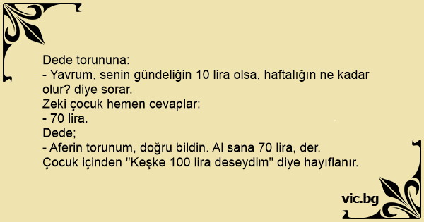 - Aferin torunum, doğru bildin. Al sana 70 lira, der.