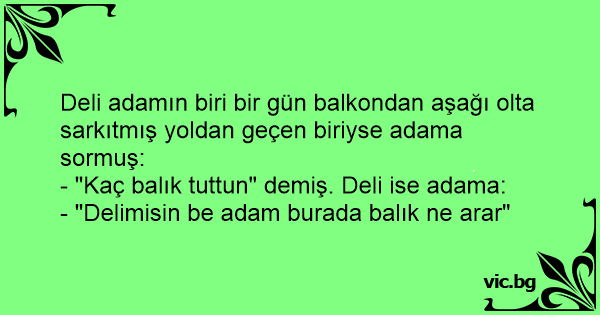 - "Kaç balık tuttun" demiş. Deli ise adama: