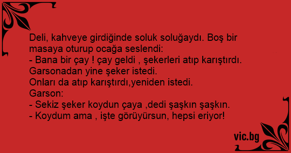 - Sekiz şeker koydun çaya ,dedi şaşkın şaşkın.
