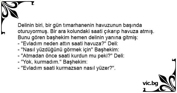 - "Evladım neden attın saati havuza?" Deli: