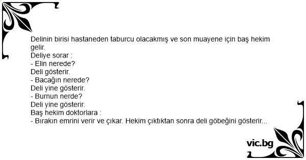 - Bırakın emrini verir ve çıkar. Hekim çıktıktan sonra deli göbeğini gösterir ve :