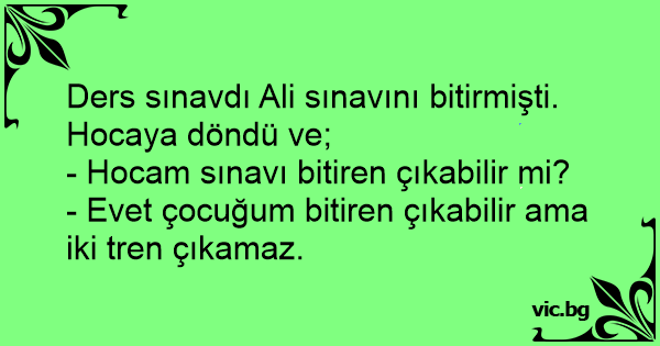 Ders sınavdı Ali sınavını bitirmişti. Hocaya döndü ve;