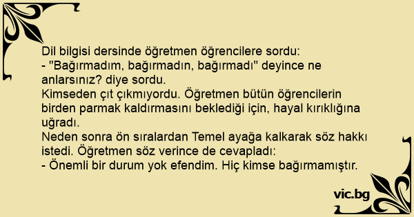 Dil bilgisi dersinde öğretmen öğrencilere sordu: