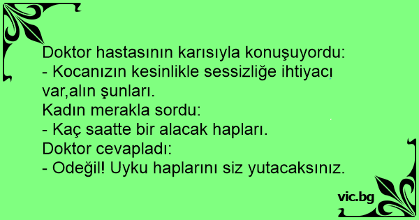 Ένας ηλικιωμένος επισκέπτεται το γιατρό: - Ξέρετε γιατρέ... Η γυναίκα μου είναι πολύ νέα... αλλά εγώ αισθάνομαι μεγάλη τάση για ύπνο... Ο γιατρός αφού σκέφτηκε για λίγο γράφει κάτι στο μπλοκ...
