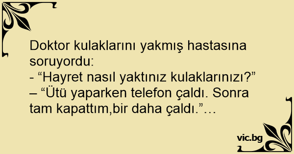 - “Hayret nasıl yaktınız kulaklarınızı?” – “Ütü yaparken telefon çaldı. Sonra tam kapattım,bir daha çaldı.”…