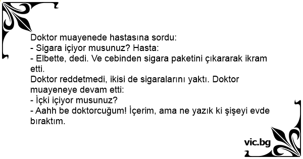 - Aahh be doktorcuğum! İçerim, ama ne yazık ki şişeyi evde bıraktım.