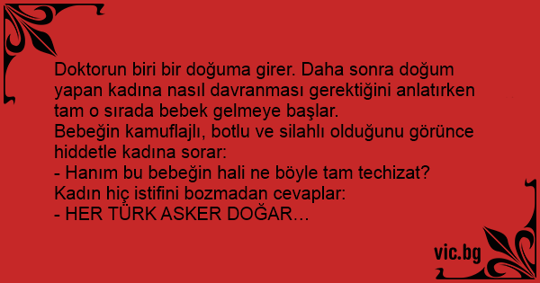Doktorun biri bir doğuma girer. Daha sonra doğum yapan kadına nasıl davranması gerektiğini anlatırken tam o sırada bebek gelmeye başlar.