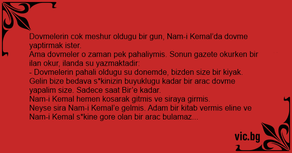 Neyse sira Nam-i Kemal’e gelmis. Adam bir kitab vermis eline ve Nam-i Kemal s*kine gore olan bir arac bulamaz sonra adam gelir ve sorar: