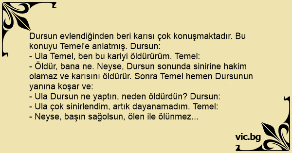 Dursun evlendiğinden beri karısı çok konuşmaktadır. Bu konuyu Temel'e anlatmış. Dursun: