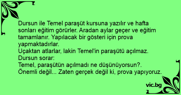 Temel, paraşütün açılmadı ne düşünüyorsun?.