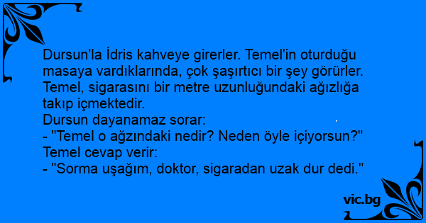 - "Sorma uşağım, doktor, sigaradan uzak dur dedi."