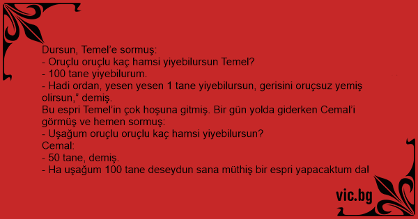 - Hadi ordan, yesen yesen 1 tane yiyebilursun, gerisini oruçsuz yemiş olirsun,” demiş.