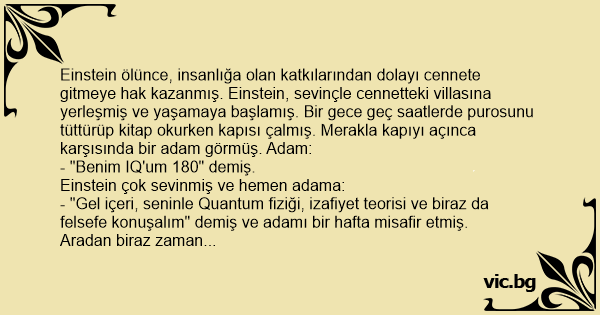 - "Benim IQ'um 1,5" demiş. Einstein bakmış bakmış:
