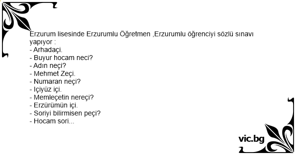 Erzurum lisesinde Erzurumlu Öğretmen ,Erzurumlu öğrenciyi sözlü sınavı yapıyor :
