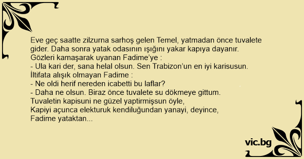 - Daha ne olsun. Biraz önce tuvalete su dökmeye gittum.