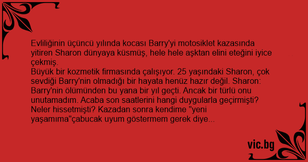 Evliliğinin üçüncü yılında kocası Barry'yi motosiklet kazasında yitiren Sharon dünyaya küsmüş, hele hele aşktan elini eteğini iyice çekmiş.