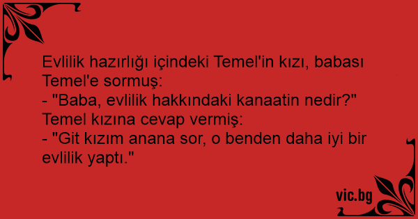 Evlilik hazırlığı içindeki Temel'in kızı, babası Temel'e sormuş: