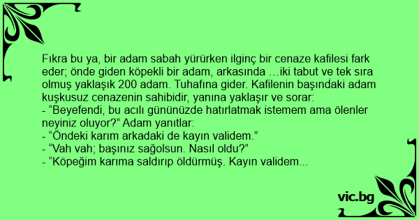 - “Köpeğim karıma saldırıp öldürmüş. Kayın validem de karıma yardıma gelmiş onu da öldürmüş.” Adam biraz düşündükten sonra sorar: