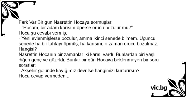 Fark Var Bir gün Nasrettin Hocaya sormuşlar: