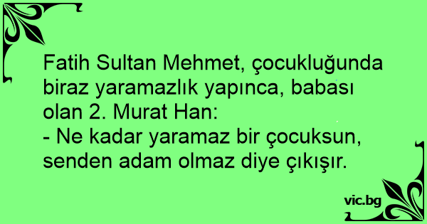 Fatih Sultan Mehmet, çocukluğunda biraz yaramazlık yapınca, babası olan 2. Murat Han: