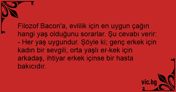 Filozof Bacon'a, evlilik için en uygun çağın hangi yaş olduğunu sorarlar. Şu cevabı verir: