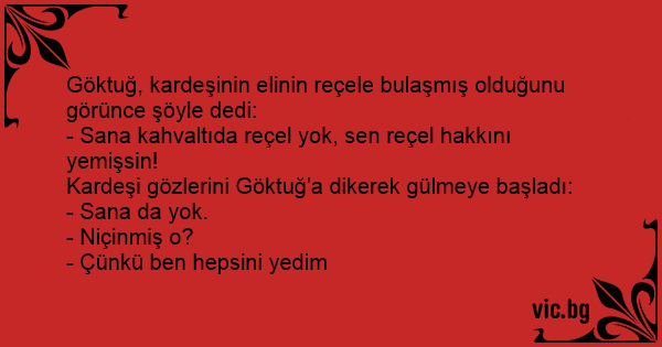 Göktuğ, kardeşinin elinin reçele bulaşmış olduğunu görünce şöyle dedi: