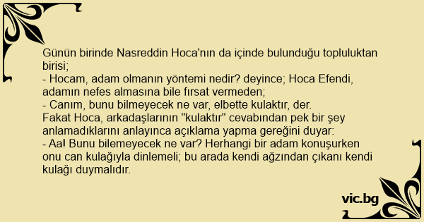 - Aa! Bunu bilemeyecek ne var? Herhangi bir adam konuşurken onu can kulağıyla dinlemeli; bu arada kendi ağzından çıkanı kendi kulağı duymalıdır.