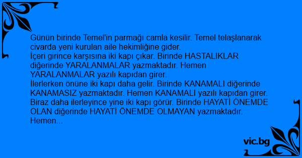 Günün birinde Temel'in parmağı camla kesilir. Temel telaşlanarak civarda yeni kurulan aile hekimliğine gider.