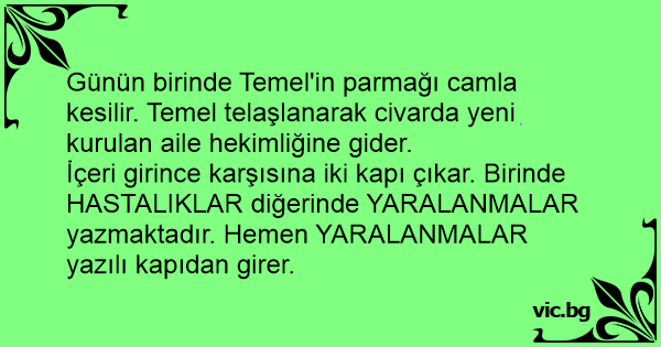 Günün birinde Temel'in parmağı camla kesilir. Temel telaşlanarak civarda yeni kurulan aile hekimliğine gider.