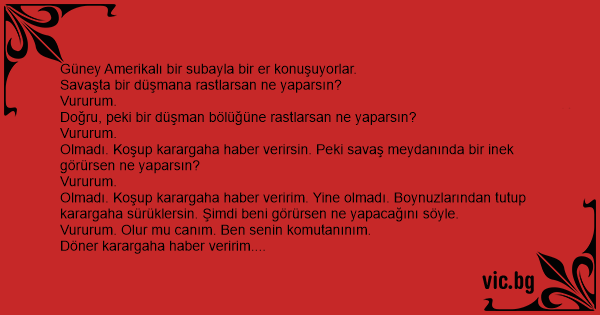 Olmadı. Koşup karargaha haber verirsin. Peki savaş meydanında bir inek görürsen ne yaparsın?