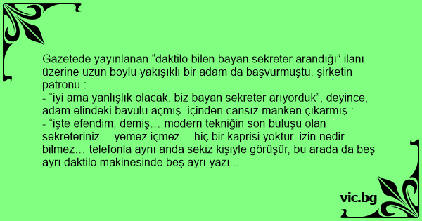 Gazetede yayınlanan “daktilo bilen bayan sekreter arandığı” ilanı üzerine uzun boylu yakışıklı bir adam da başvurmuştu. şirketin patronu :