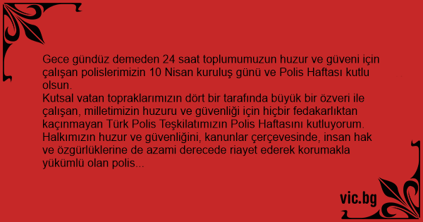 Gece gündüz demeden 24 saat toplumumuzun huzur ve güveni için çalışan polislerimizin 10 Nisan kuruluş günü ve Polis Haftası kutlu olsun.