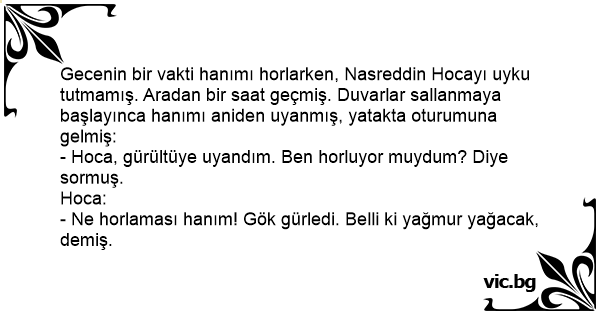 - Hoca, gürültüye uyandım. Ben horluyor muydum? Diye sormuş.