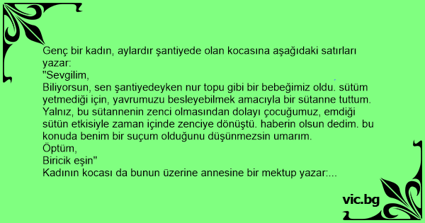 Kadının kocası da bunun üzerine annesine bir mektup yazar: