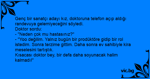 Genç bir sanatçı adayı kız, doktoruna telefon açıp aldığı randevuya gelemiyeceğini söyledi.