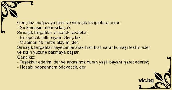 Genç kız mağazaya girer ve sırnaşık tezgahtara sorar;