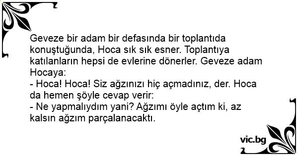 - Hoca! Hoca! Siz ağzınızı hiç açmadınız, der. Hoca da hemen şöyle cevap verir: