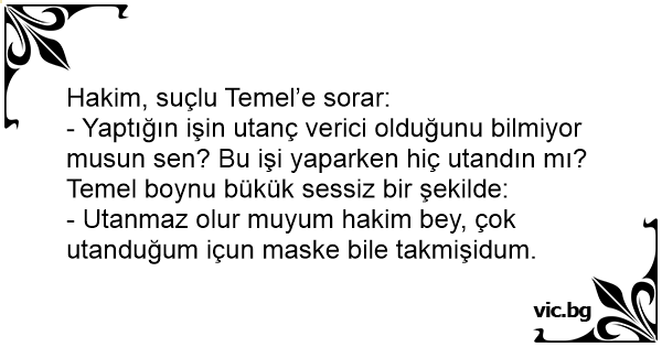 - Utanmaz olur muyum hakim bey, çok utanduğum içun maske bile takmişidum.