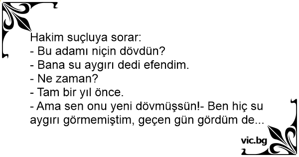 - Ama sen onu yeni dövmüşsün!- Ben hiç su aygırı görmemiştim, geçen gün gördüm de...