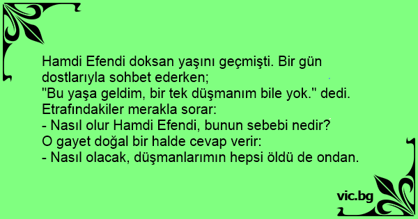 Hamdi Efendi doksan yaşını geçmişti. Bir gün dostlarıyla sohbet ederken;