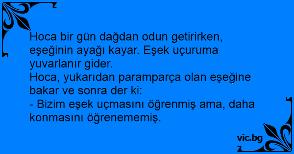 - Bizim eşek uçmasını öğrenmiş ama, daha konmasını öğrenememiş.
