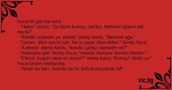 - "Efendi, bugün sana ne oluyor?" demiş karısı "Komşu" dedin ya."