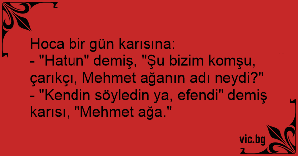 - "Kendin söyledin ya, efendi" demiş karısı, "Mehmet ağa."
