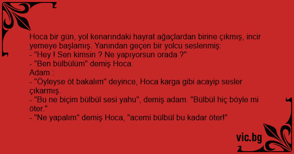 - "Ben bülbülüm" demiş Hoca.