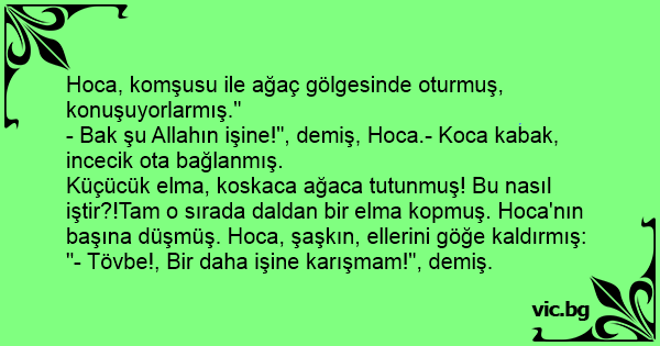 Hoca, komşusu ile ağaç gölgesinde oturmuş, konuşuyorlarmış."