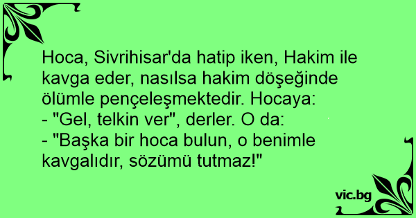 - "Başka bir hoca bulun, o benimle kavgalıdır, sözümü tutmaz!"