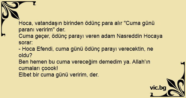 Hoca, vatandaşın birinden ödünç para alır "Cuma günü paranı veririm" der.