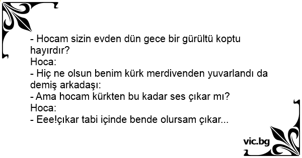- Hocam sizin evden dün gece bir gürültü koptu hayırdır?