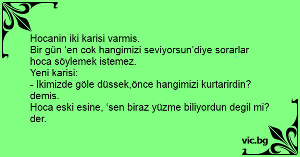 - Ikimizde göle düssek,önce hangimizi kurtarirdin? demis.